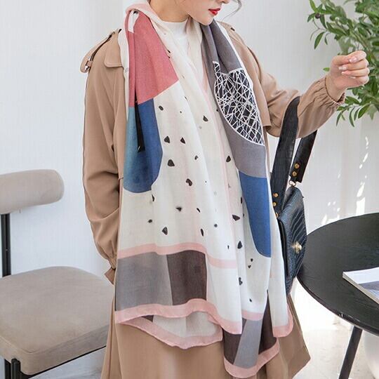 幾何学模様と優しいピンク、ホワイト、グレーの色合いパステルカラー大判薄手ストール 鮮やかさを抑えたデザインが穏やかで優しい雰囲気を演出 特に春夏の季節には、その柔らかで淡い色味が注目を集め どんな装いにも自然に溶け込み 上品さを引き立てます バレンタイン 2026 ギフト 彼女 妻 母 友チョコ 幾何学模様 パステルカラー ピンク ホワイト グレー 薄手 大判 軽量 上品 サプライズ 感謝 ホワイトデー 返し ma0365a