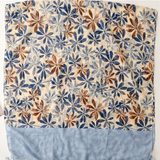 シェフレラ柄 ストール レディース 大判 薄手 透け感 リーフ柄 タッセル付き ライトブルー スカーフ 春夏 秋冬 オールシーズン UVカット 紫外線対策 日よけ 冷房対策 ナチュラル 上品 清潔感 きれいめ 通勤 新生活 お出かけ 母の日 ギフト プレゼント 送料無料 ma0251a
