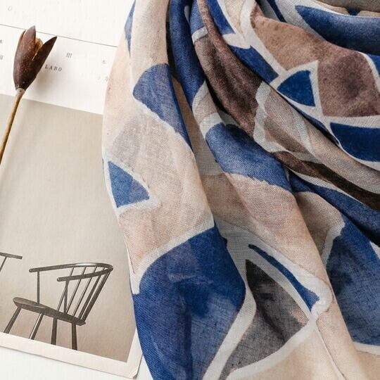 幾何学模様 ストール レディース 大判 薄手 軽量 水彩風 三角形 レトロ ブルー グレー ブラウン スカーフ 春夏 秋冬 オールシーズン 上品 きれいめ 通勤 オフィス カジュアル お出かけ 新生活 UVカット 冷房対策 ギフト プレゼント 送料無料 ma0230a