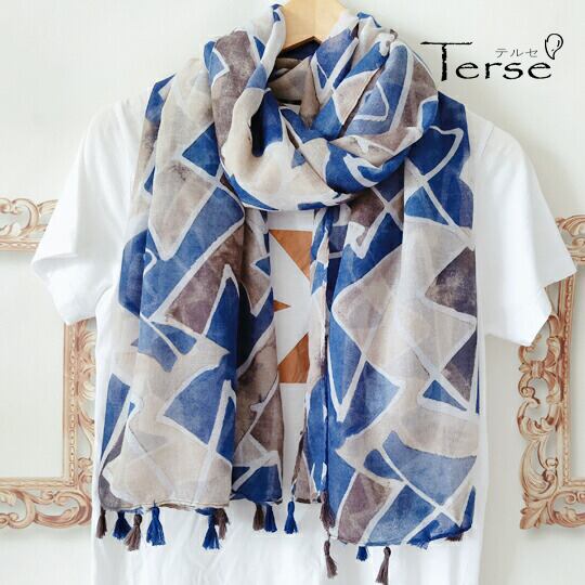 洗練された装いを演出する「Terse さわやかなブルー、こげ茶色、グレーの三角形を集まって手描き水彩画ような幾何学模様レトロなプリント大判ストール」。このストールは、クラシックで豪華なスタイルをお楽しみいただける逸品です。ふっくらとした軽さと弾力があり、さらりとした肌触りが特徴で、これからの季節に心地よくお使いいただけます。シンプルなコーディネートに、リッチな印象を加えることで、おしゃれ感を一段と引き立てます。