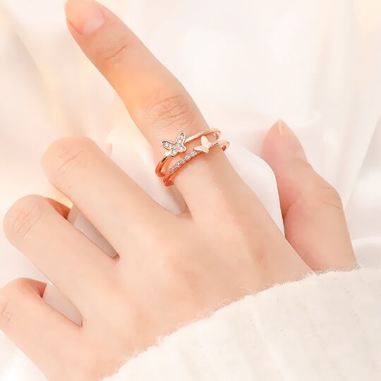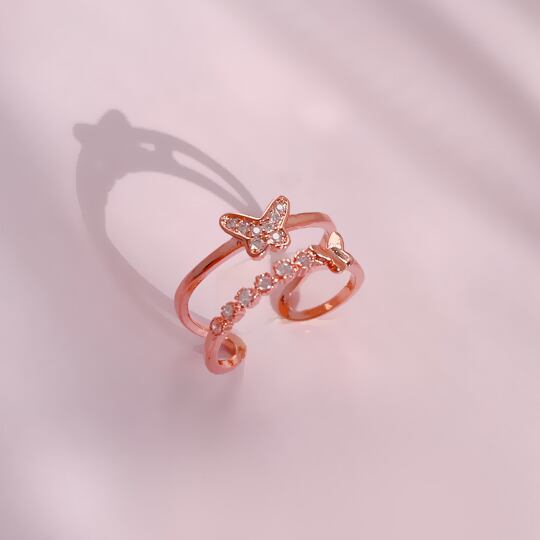 蝶モチーフ リング レディース 2連セットリング フォークリング CZダイヤ 指輪 フリーサイズ 上品 高見え 華やか 大人可愛い フェミニン おしゃれ 重ね付け 新生活 春アクセサリー お呼ばれ デート 誕生日 ギフト プレゼント 送料無料 rs0211apg