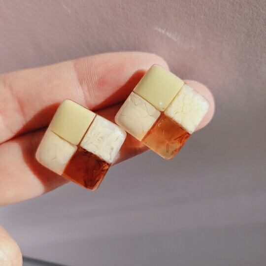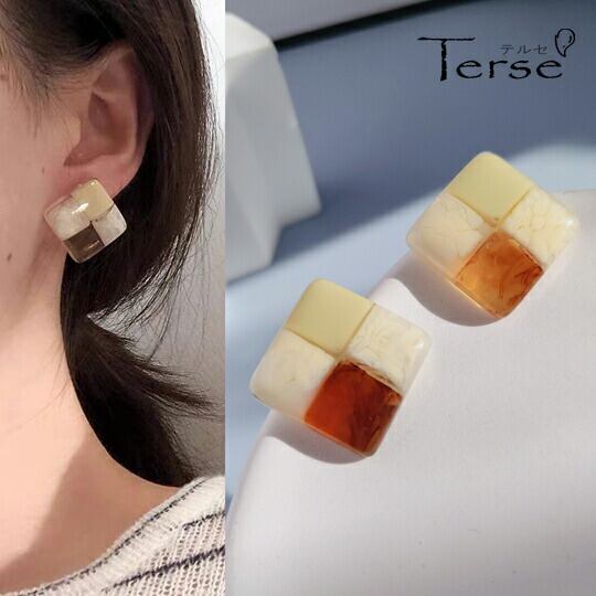 陽気なオレンジ&クリームイエローで華やかさをプラス!Terseのブロックチェックピアスでおしゃれを楽しんでください♪