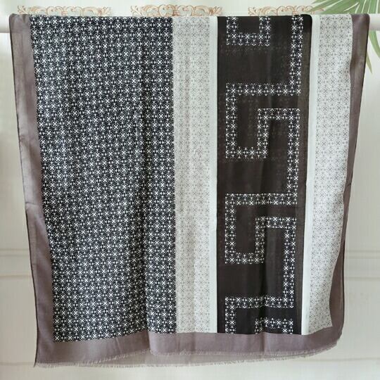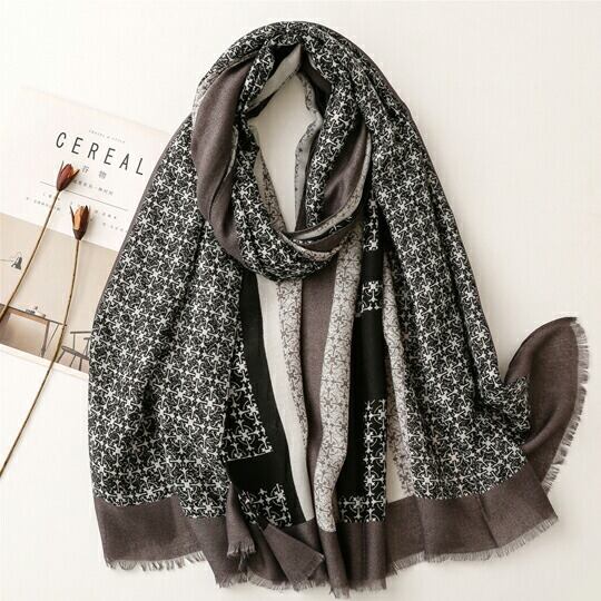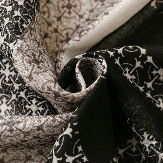 シックなモノトーンカラーに、リズム感のある小柄がおしゃれなストール シアー感のある素材がニュアンスあるムードに ストール 端に施したフリンジがアクセントになり、シンプルながらもこなれた雰囲気を醸し出 さりげなく華やかな大人っぽい一枚 ユニクス ma0344a