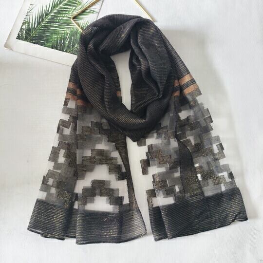 透け感ミックス 幾何学模様 大判薄手ストール ダークグレー 落ち着き さりげなくフェミニン シック 大人っぽい コーデに最適 ニュアンス レディース オールシーズン おでかけ ギフト プレゼント ストール スカーフ ma0401abk