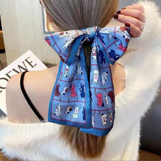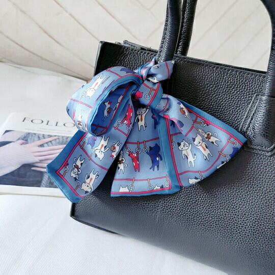 差し込みタイプ ネコモチーフスカーフ ブルー 可愛い 猫柄 遊び心 個性的なおしゃれ バッグアクセント ヘアアレンジ キュッと結ぶ ボウスカーフ ハロウィン レディース 春夏 秋 おでかけ ギフト プレゼント ma0119abl