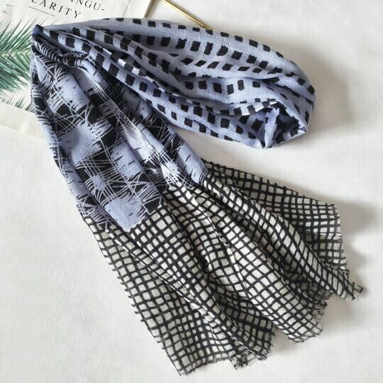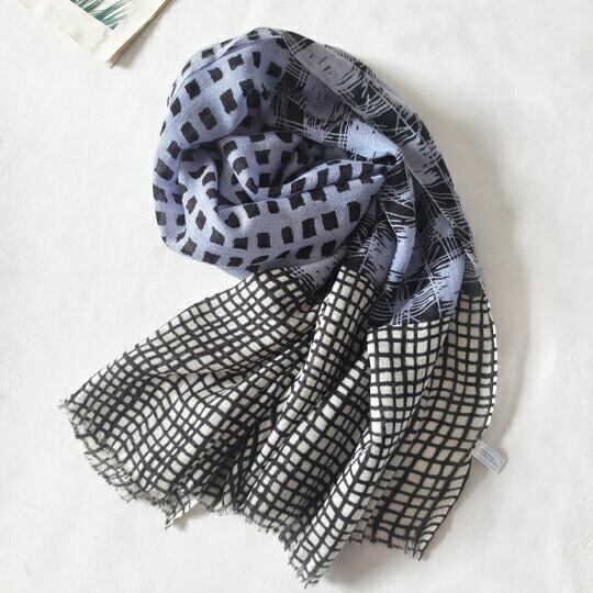 爽やかなブルーが魅力の大判ストール!気取らない雰囲気を演出する手描きのチェック柄☆