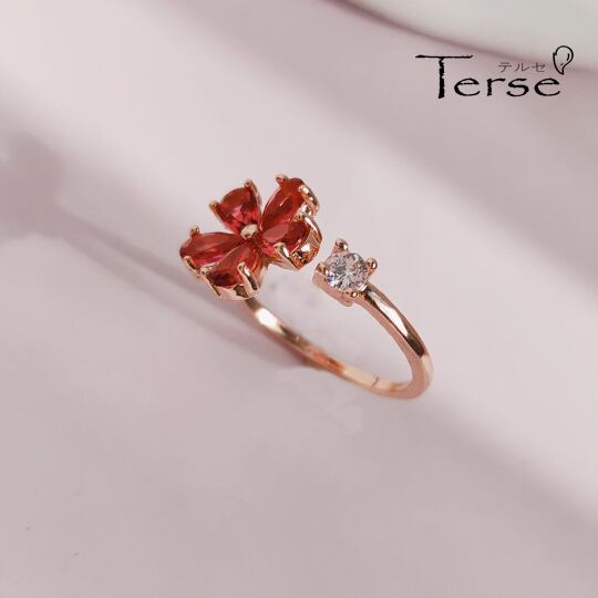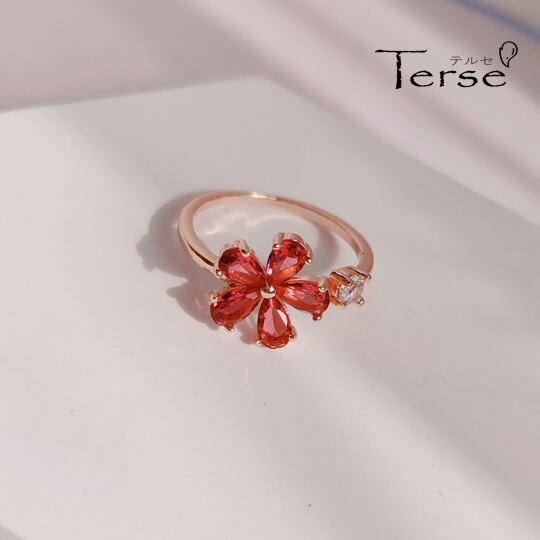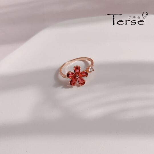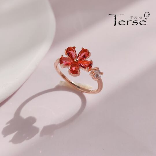 胸元に花の美しさをプラス、Terseの5枚のピンクCZダイヤ花びらからなるコスモス フォークリング!