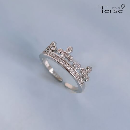 Terse レースのクラウン(王冠)をイメージしたクラウンモチーフフォークリング 繊細な透かしの装飾が際立つ、よりクラシカルな印象に 程よいボリューム感はそのままに、より指にフィットする軽やかな着け心地の良さが魅力 大人っぽさが、王道ながら新鮮な雰囲気 rs0373as