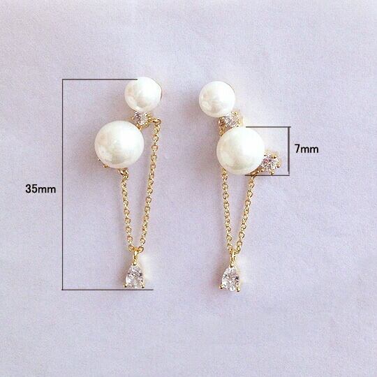 Leafy ネックレスのようなデザイン☆大小のパール&ジルコニアが輝くピアス 4月誕生石 ゴールド 1ペア レディース エレガントな印象に お出かけ デート お呼ばれ パーティー 二次会 食事会 女子会 普段使い プレゼント 14KGP ゴールドメッキ sr00996yg冠婚葬祭