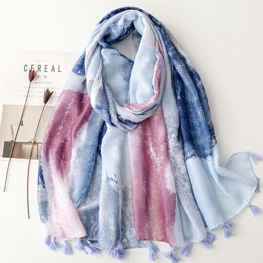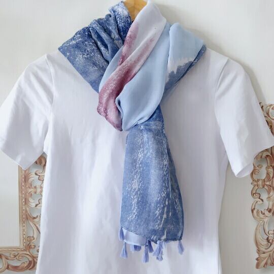 柔らかな水彩画風のピンクとブルー 柔らかな色使いなので、優しい印象で合わせやすい 軽くふんわりとした つけ心地の良さがポイント シャツやブラウスに合わせるだけでお洒落度アップ シンプルなお洋服のポイントになります ma0305a