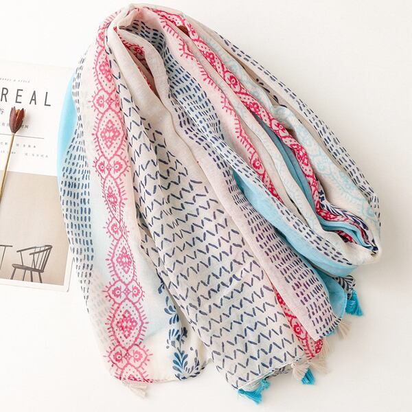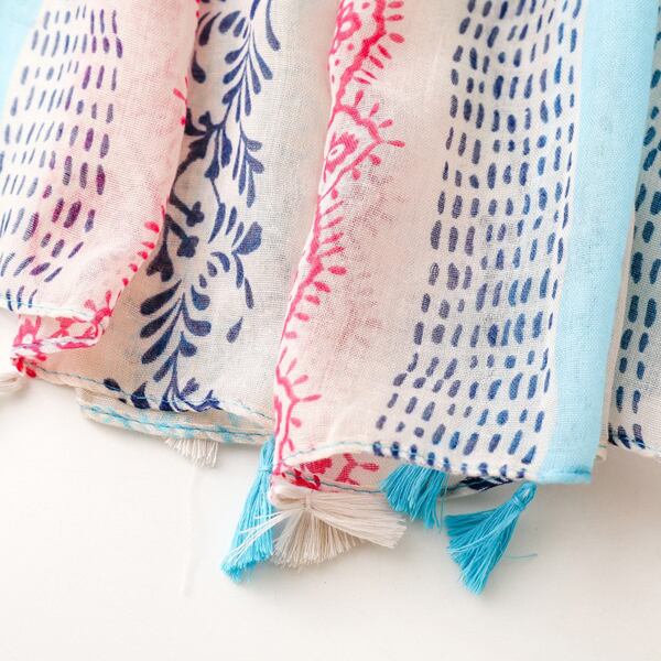 スカーフ レディース 大判 ボヘミアン柄 幾何学模様 ボタニカル柄 ストライプデザイン フリンジ付き タッセル付き ブルー ピンク 配色 夏スカーフ 薄手 軽量 透け感 UV対策 冷房対策 日焼け防止 春夏 秋 海 リゾート ビーチ 旅行 おしゃれ 高見え 大人可愛い きれいめ カジュアル エスニック風 ナチュラルコーデ アクセントストール 通勤 お出かけ デート 女子会 ギフト プレゼント 20代 30代 40代 女性向け ma0417a