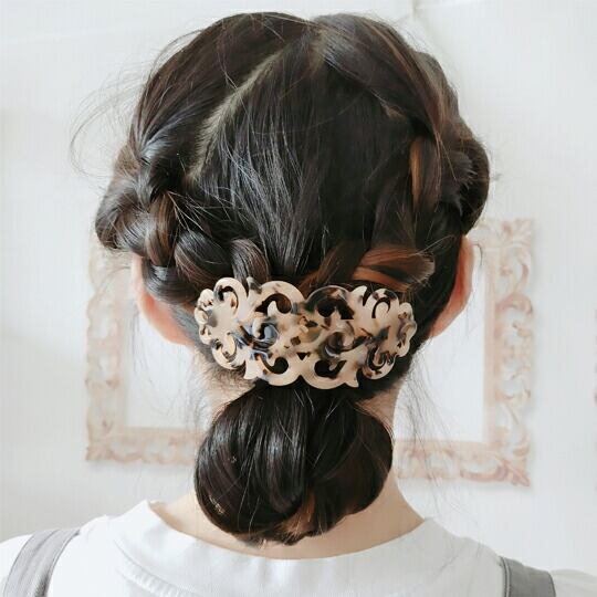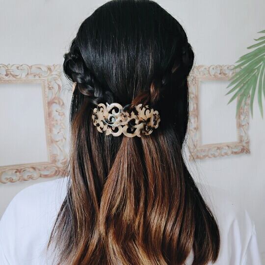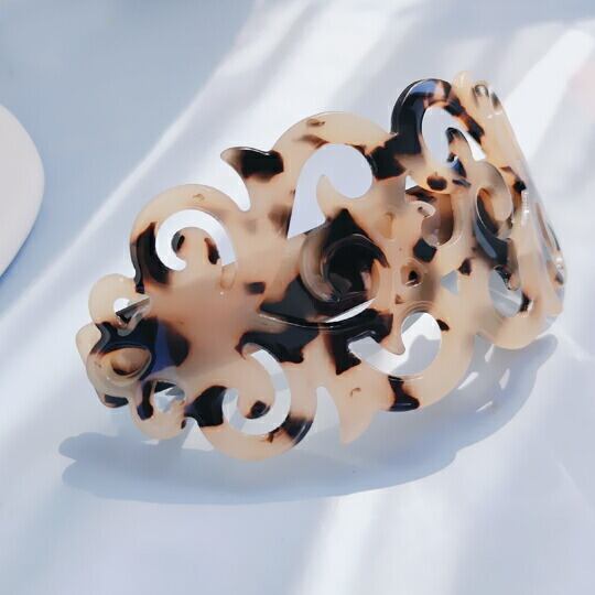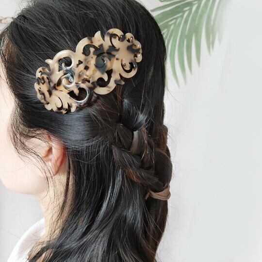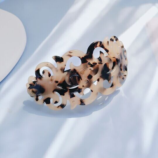 Leafy アンティーク調のレース模様の曲線が美しいヘアべっ甲風アクリルバレッタ 落ち着いたマーブル色が髪に映え、デイリーにもおめかしにもふさわしいクオリティ 透かし模様 オーバル ヘアアクセ ヘアアクセサリー オフィス カジュアル 大人っぽい ha0162al
