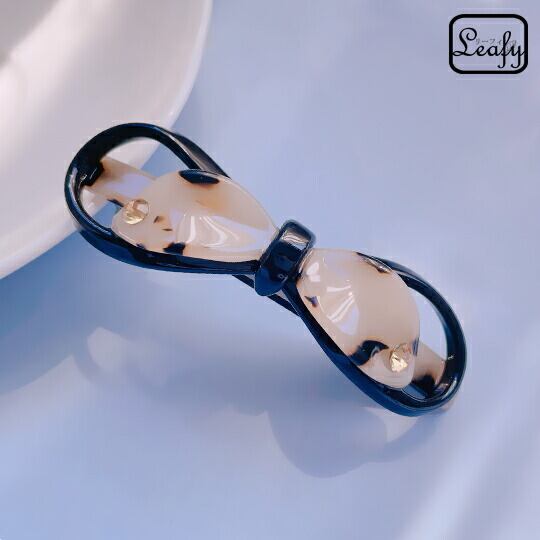 Leafy上品な魅力とレトロなかわいさを持ち合わせたべっ甲柄ヘアアクセサリー 普段のヘアスタイルにプラスするだけで着こなしのアクセントに 甘さを控えたアシンメトリーデザインのリボンが上品なスタイルを叶えてくれる、大人のリボンバレッタ ha0142a