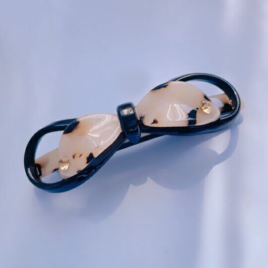 べっ甲柄 アシンメトリーデザイン リボンバレッタ 上品 レトロかわいい ヘアアクセサリー 髪にプラス 着こなしのアクセント 甘さ控えめ 大人のリボン ミルクティー レディース おでかけ ギフト プレゼント ha0142a