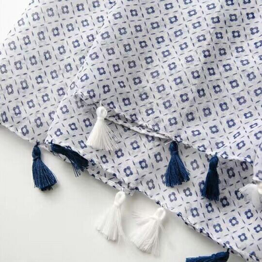 爽やかブルー柄 透け感 ストール 大判 薄手 コーデしやすい 広げて大きく纏う エレガントに肩かけ カジュアル オケージョン 品よくスタイリング引き締め リゾート 普段使い ホワイト×ブルー レディース 春夏 おでかけ ギフト プレゼント マフラー ma0152a