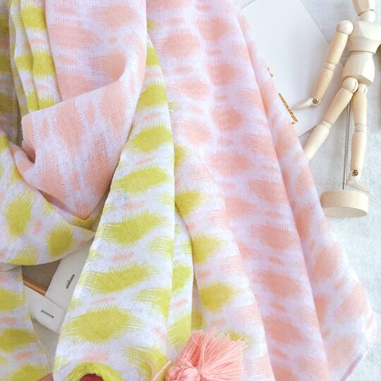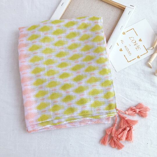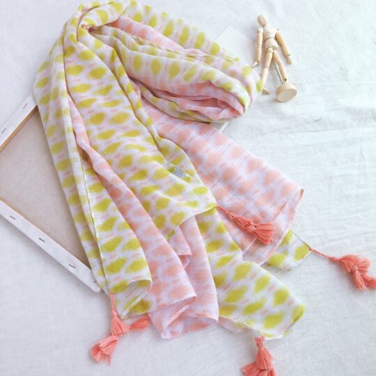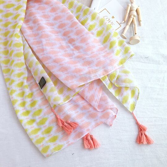 水玉柄 タッセル付き 大判ストール ショール 小顔効果 UVカット 紫外線対策 日焼け防止 肩掛け 日よけ 上品 エレガント 綺麗な模様柄 顔周り華やか ピンク グリーン ホワイト レディース 春夏 おでかけ ギフト プレゼント マフラー ma0080a
