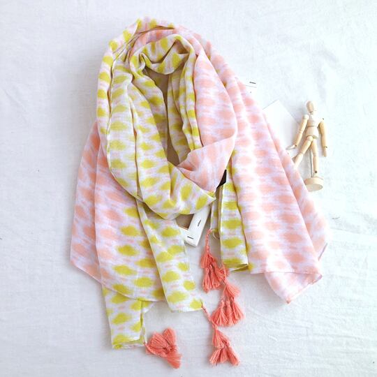 タッセル付き 大判ストール ショール 小顔効果UVカット マフラー 巻き物 紫外線対策 水玉 日焼け防止 肩掛け 日よけ 上品さ、エレガントさの雰囲気を併せ持つ 綺麗な模様柄が際立ち、顔周りを華やかに彩ってくれますma0080a
