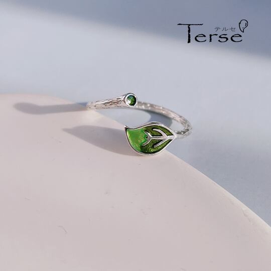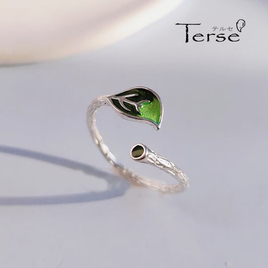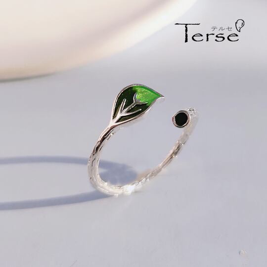Terse グリーンの葉っぱがくるりと指先にまきつく大人可愛いリング 指輪 レディース サイズフリー フォークリング お出かけ デート お呼ばれ パーティー 二次会 女子会 食事会 普段使い プレゼント 春 rs0157a
