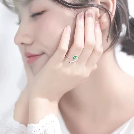 グリーン葉っぱ くるりと指先に巻きつく 大人可愛いリング フォークリング S925 サイズフリー 調整可能 レディース 春 お出かけ デート お呼ばれ パーティー 二次会 女子会 食事会 普段使い ギフト プレゼント rs0157a