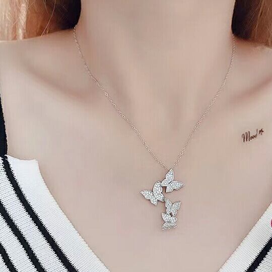 連なる蝶 バタフライモチーフ ネックレス S925 ジルコニア キラキラ 胸元でゆらゆら 存在感抜群 スタイリッシュ 春 昆虫 レディース お出かけ デート パーティー ギフト プレゼント sn0015a