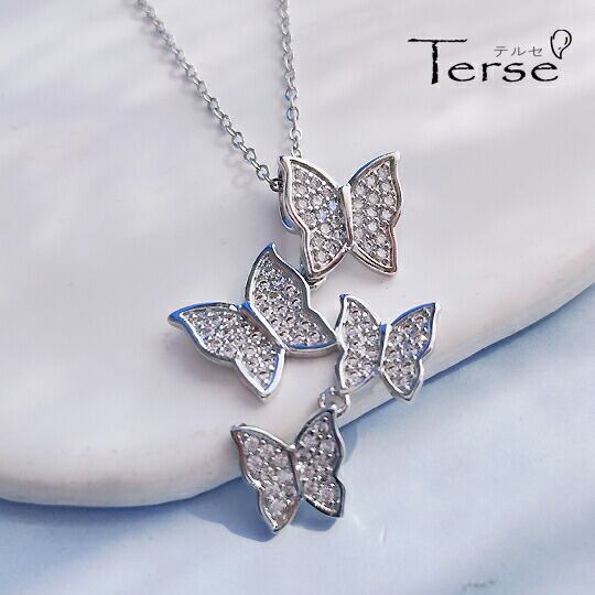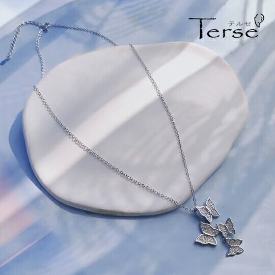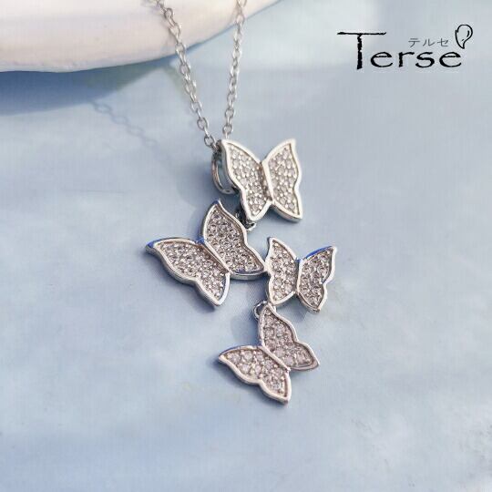 ■春の訪れを感じさせる優雅な蝶モチーフネックレス!Terseシルバー925キラキラジルコニアの蝶モチーフネックレス!
